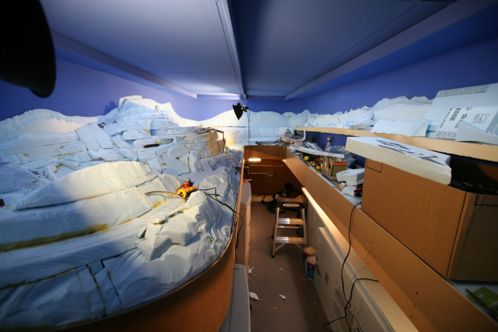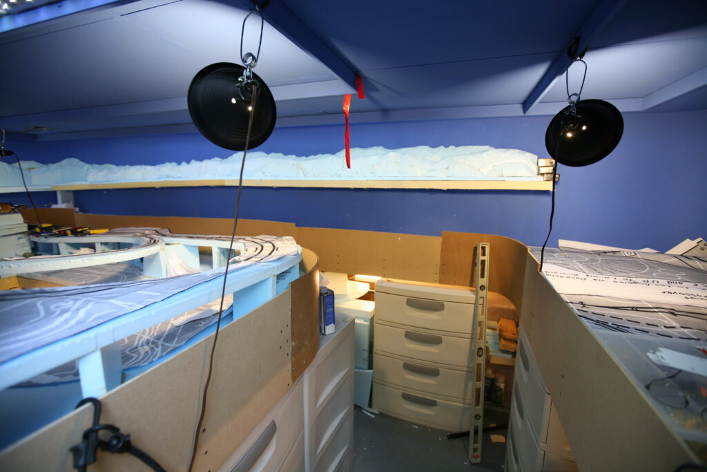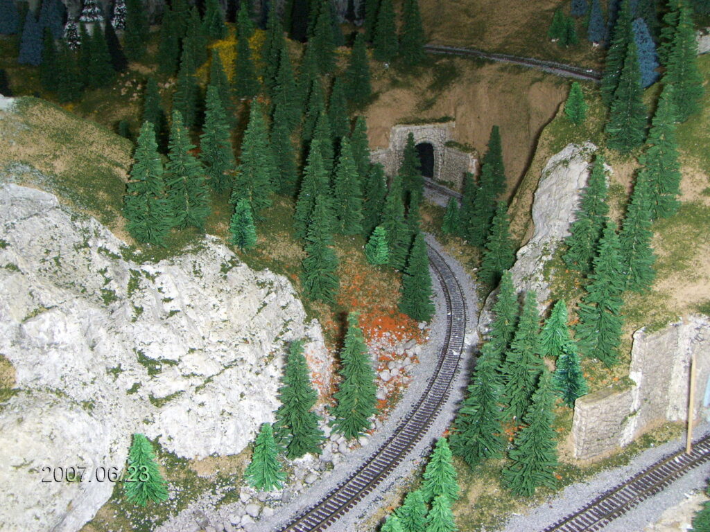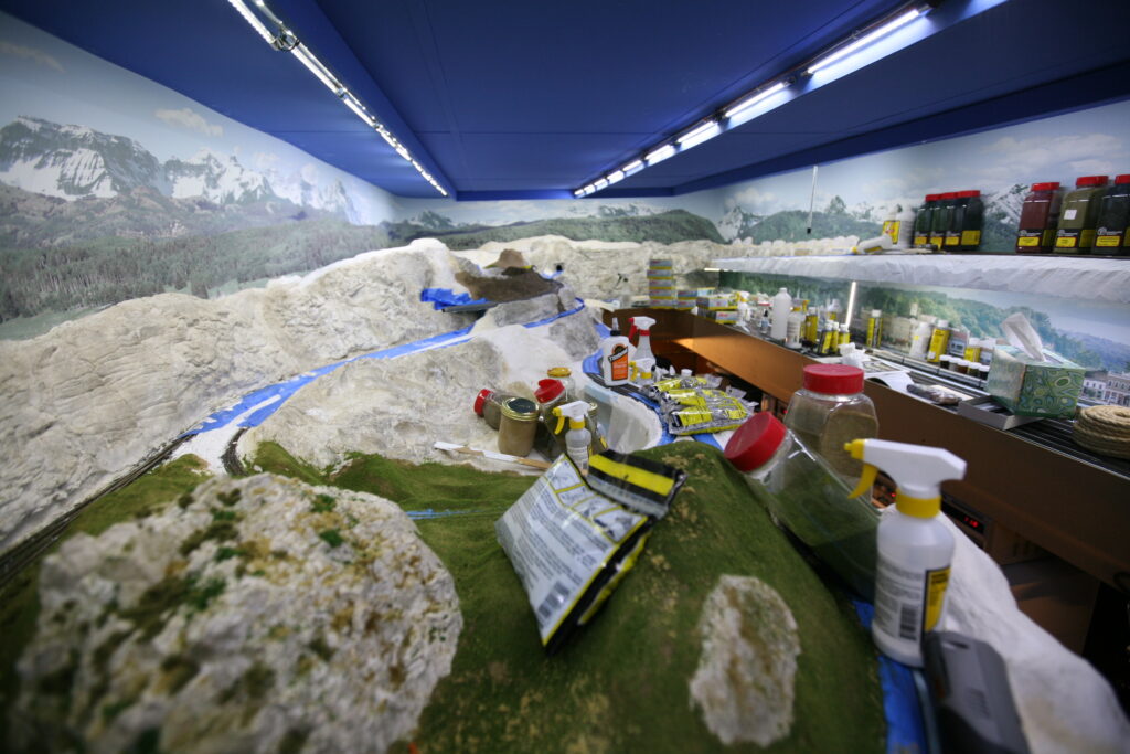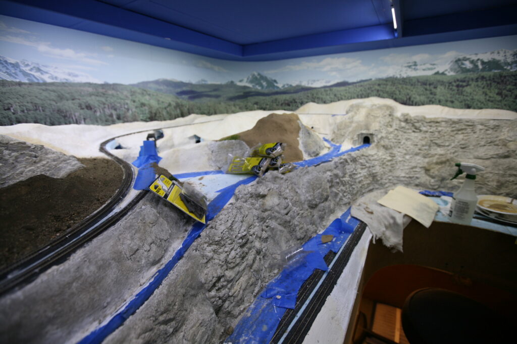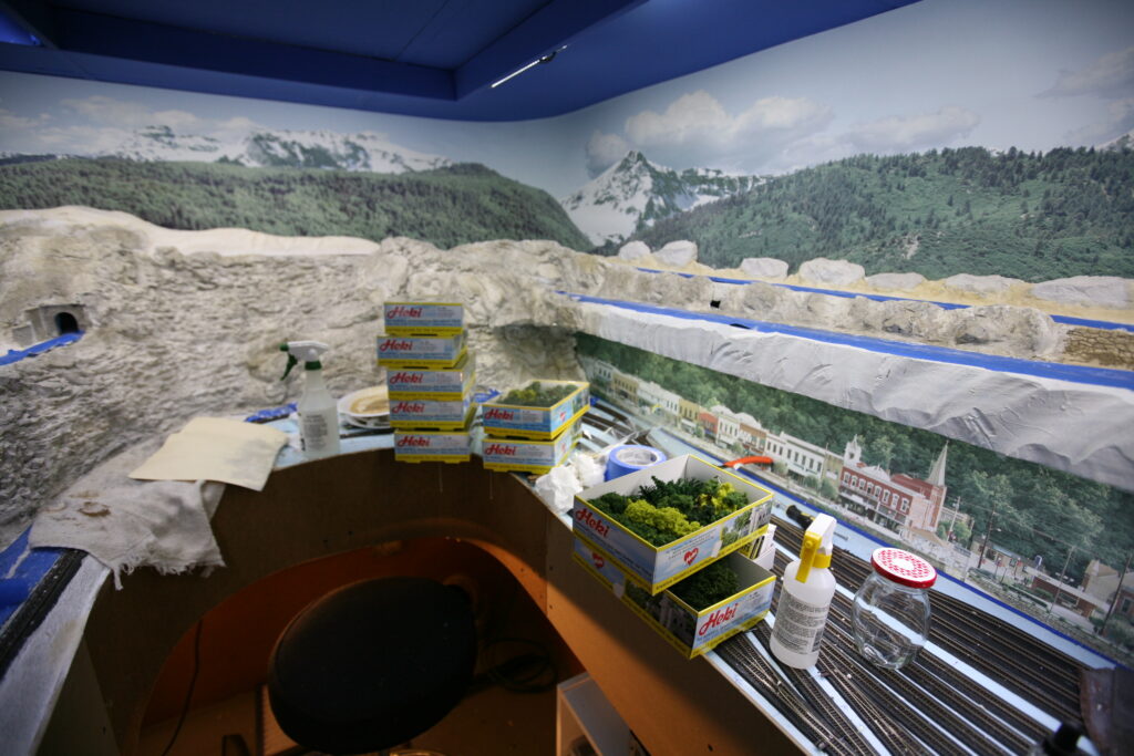 Follow a garden railroad journey from Tehachapi to Donners Pass, weaving through rocks, living plants, and miniature trees inspired by nature.